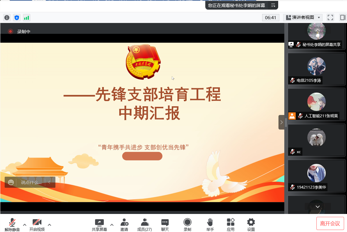先锋支部培养工程中期汇报在线上举行,学院各团支部汇报“3+X”建设情况并互相交流。麻豆视频