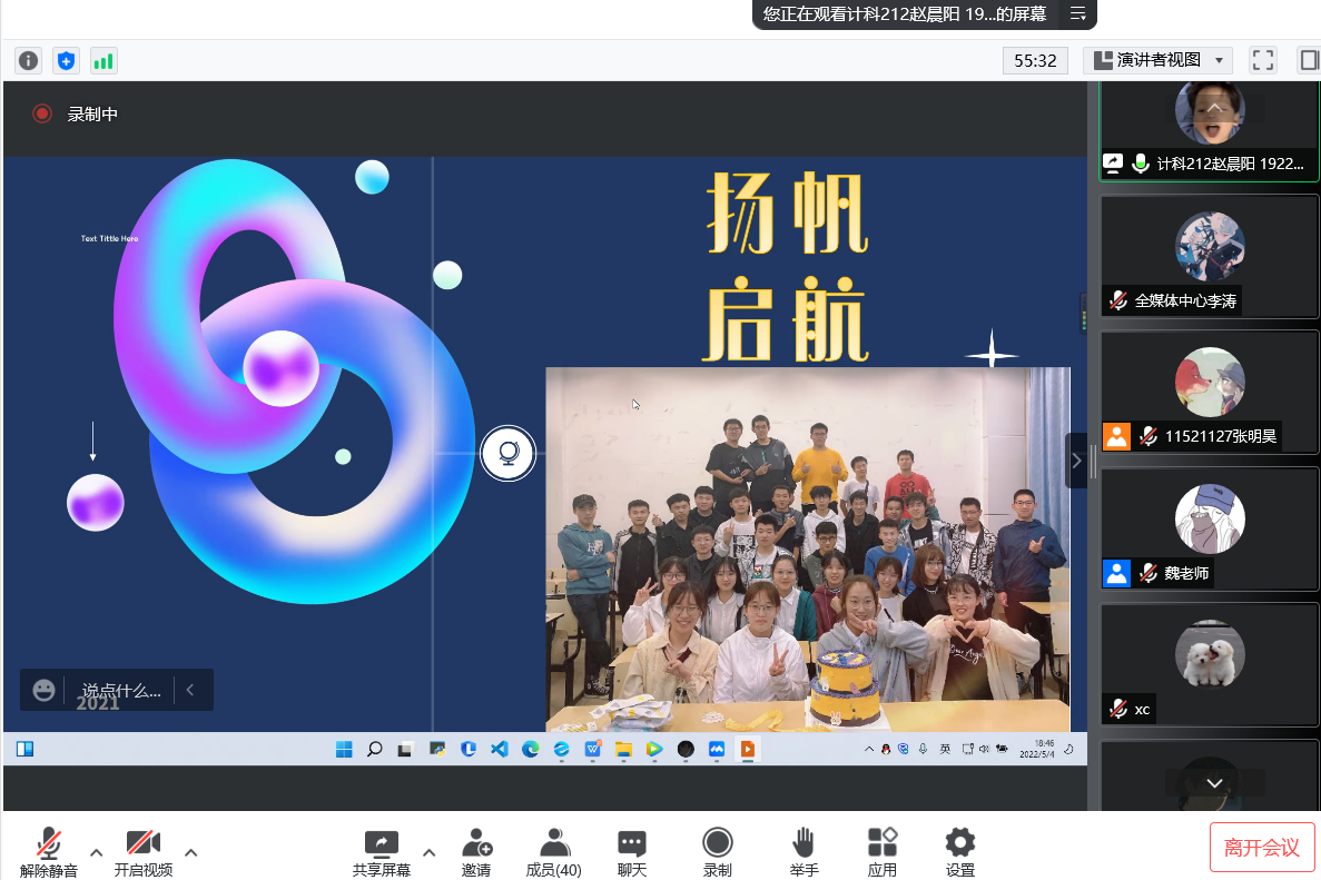 各支部按照顺序依次进行了详细的汇报。魏宇宁、吴予欣、李铠志、刘涛就各支部建设情况、特色项目等进行点评并给出建议。各团支部汇报完毕后,魏宇宁对所有支部建设情况进行了综合性的点评并提出相关建议,她希望:一、团支部要充分发挥自身特点,形成支部特色;二、支部间要多交流学习,不断提高综合素质;三、团干部要以身作则,发挥先锋模范作用;四、要结合当下形势,不断调整支部工作方式,做到与时俱进。
