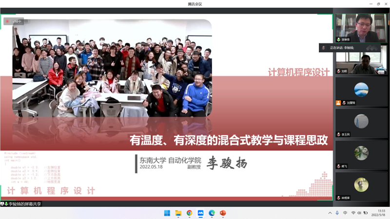 邀请东南大学自动化学院李骏扬副教授开展了“有温度、有深度的混合式教学与思政设计”专题讲座,会议由刘杨副院长主持,多名教师线上参与分享交流。