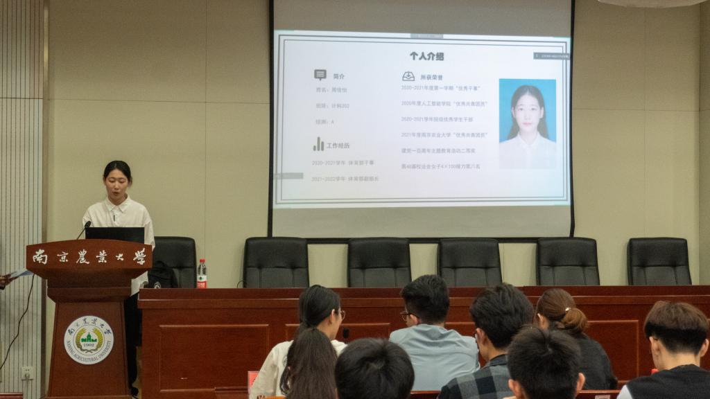 全体成员起立,奏唱国歌,在庄严的国歌声中,换届大会正式开始。院分党校秘书长刘鸿赫、学生团委副书记吴田田、全媒体中心主任李知鸿、AI工坊主席王茜格分别作2021-2022学年度工作总结。汇报完毕后,主持人宣读第三届学生组织换届评选方法及学生组织主席团候选名单。随后,十位候选人依次进行竞选演讲,评委老师进行提问和点评。候选人结合各自的实践经历、所获成绩和性格特点,分别就对各自部门的认识,在过去工作中取得的成绩,以及对未来工作的展望等方面做出了汇报,努力争取每一票。秉持“公平、公正、公开、择优”的原则,换届领导小组成员及各班学生代表慎重投出自己的一票,现场选举产生新一届主席团成员。最终王楚涵、薛志强、梅秋怡、简汇佳、周新越、周佳怡、南靖妍、刘雅彬获得票数前八名当选主席团成员。大会的最后,湛斌进行总结,他首先肯定并感谢了上一届学生组织成员出色的工作,同时也对新一届学生干部提出了更高的期望,希望在今后的工作中,团学干部能以身作则,求真务实,做学生中的表率,努力提高自身协调、沟通、应变能力,争做优秀学生干部。最后,大会在校歌声中圆满结束。