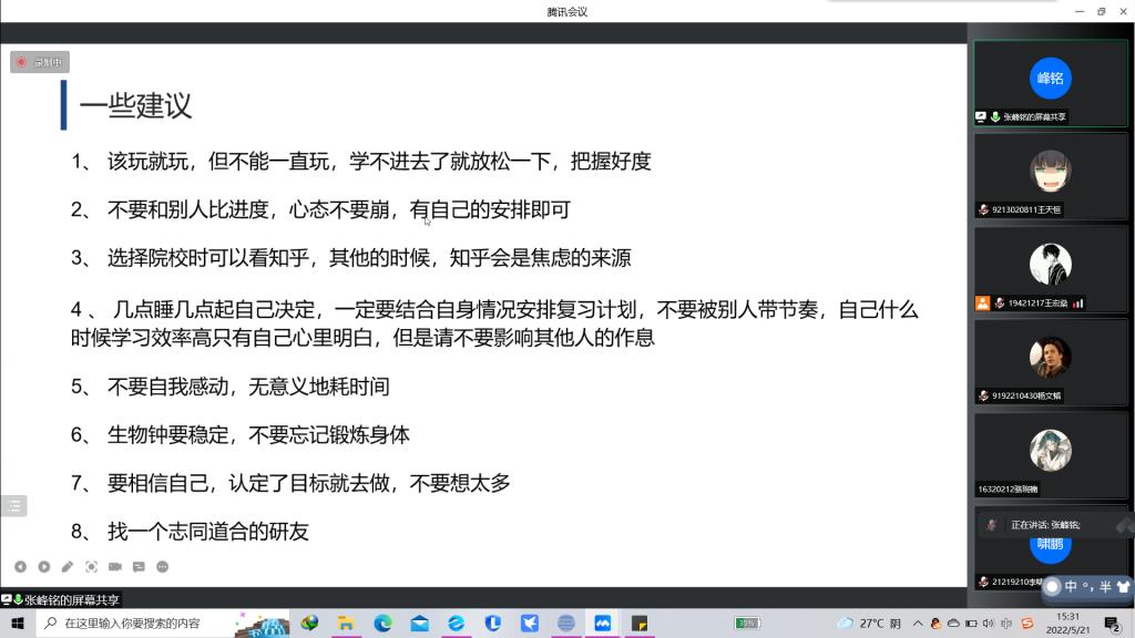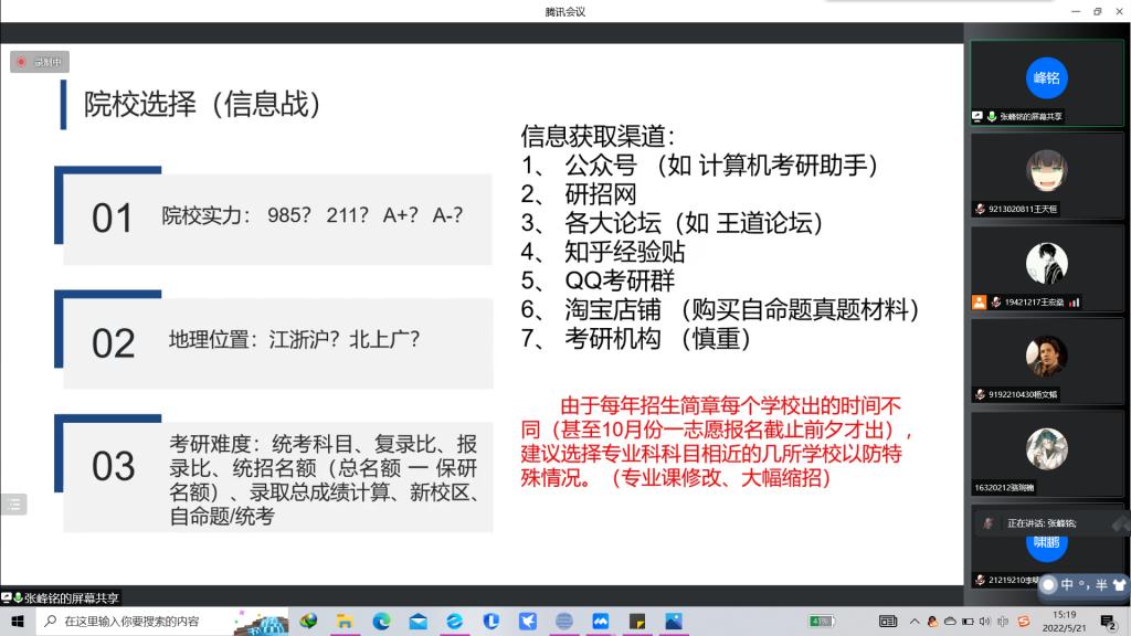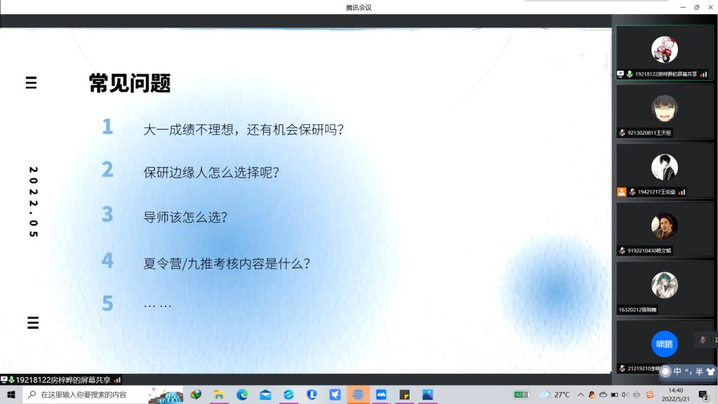 于线上召开“AI科研月”——“努力拼搏,研出未来”保研考研知识讲座。保研学子赵中豪、房梓晔,考研学子孙梦、张峰铭出席本次活动。本次活动面向麻豆视频