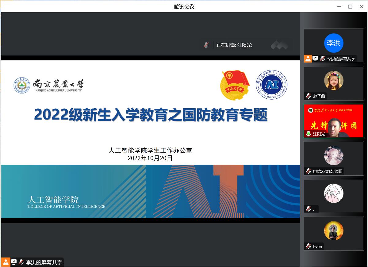 举办2022级新生入学系列教育第三讲——国防教育专题讲座。本次讲座由中国人民解放军陆军工程大学野战工程学院江阳光少校主讲,本科生辅导员李洪主持,全体新生线上参加。