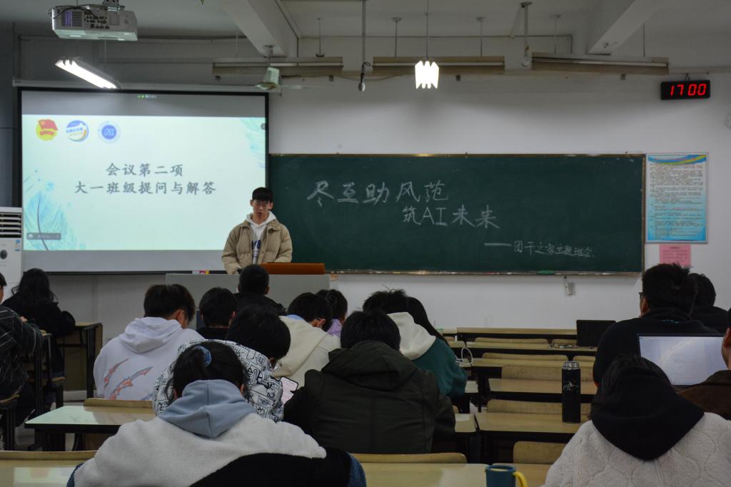 团委举办了“尽互助风范,筑AI未来”团干之家主题会议。院本科生辅导员魏宇宁,院学生会秘书处成员,院大一、大二各团支部团干部参加本次会议。