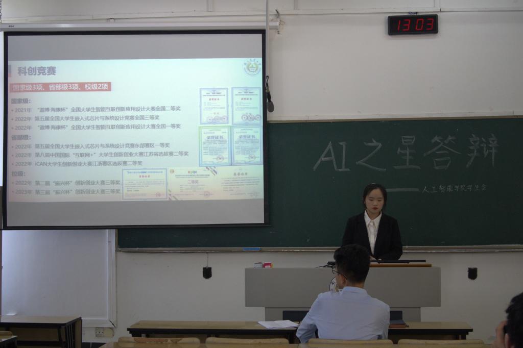 创业之星竞选者吴陈晨富有开拓、创新精神,基础知识牢固,有着浓厚的创业热情。文体之星竞选者吴溪桐具有文艺特长,积极参与文艺活动的组织、策划,为学院营造良好的校园文化氛围发挥重要作用。最终,11位候选人凭借自己的优异表现均获得“AI之星”称号。