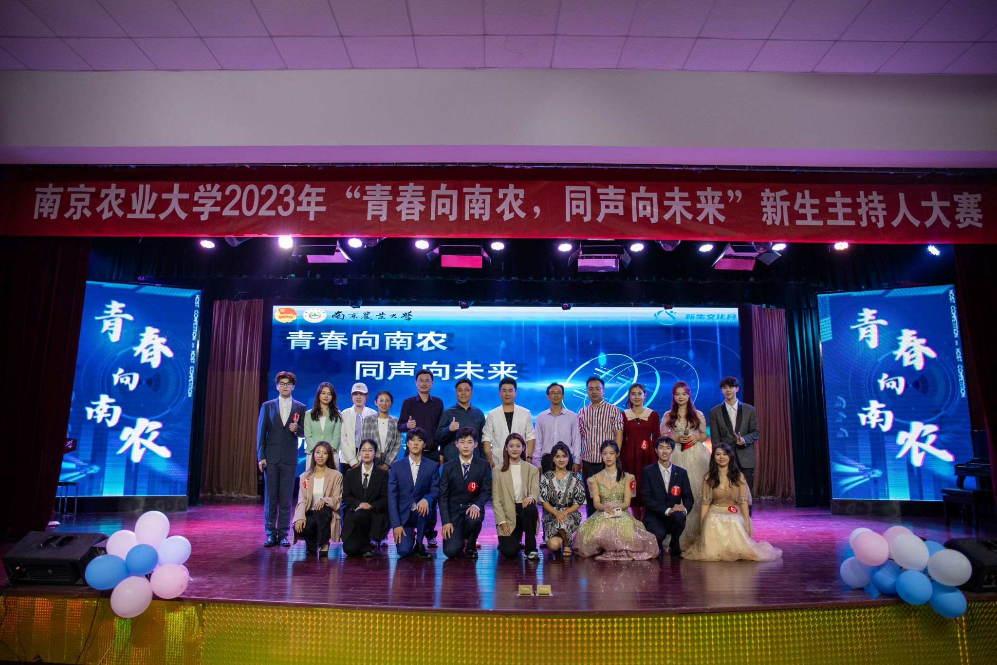 一路以来,这12位选手为彼此打气加油,总结经验互相交流,在一轮又一轮的比拼中并肩前行、共同成长,把南农学子出色的专业素质与积极向上的青春风采呈现给观众。本次新生主持人大赛让梦想在这方舞台开花结果,见证着选手践行“诚朴勤仁”的校训,把握时代脉搏,讲好南农故事,诠释了当代青年应有的本色,为“新生代主持人的使命担当”写出了独属于南农的答案。