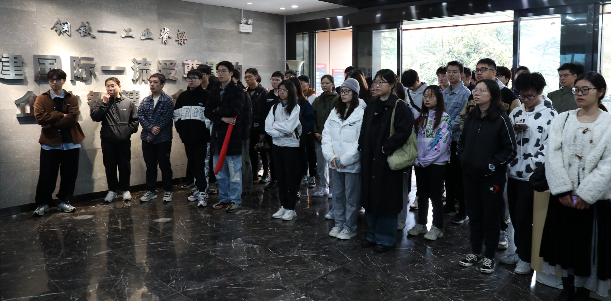本次主要参观南钢率先建成的钢铁行业首个集群式一体化智慧运营中心,感受数字技术对钢铁制造产业链的重塑。企业解说员用智慧大屏,带领学生“实地”探寻了世界首条专业加工高等级耐磨钢配件的“5G+工业互联网”智能工厂。