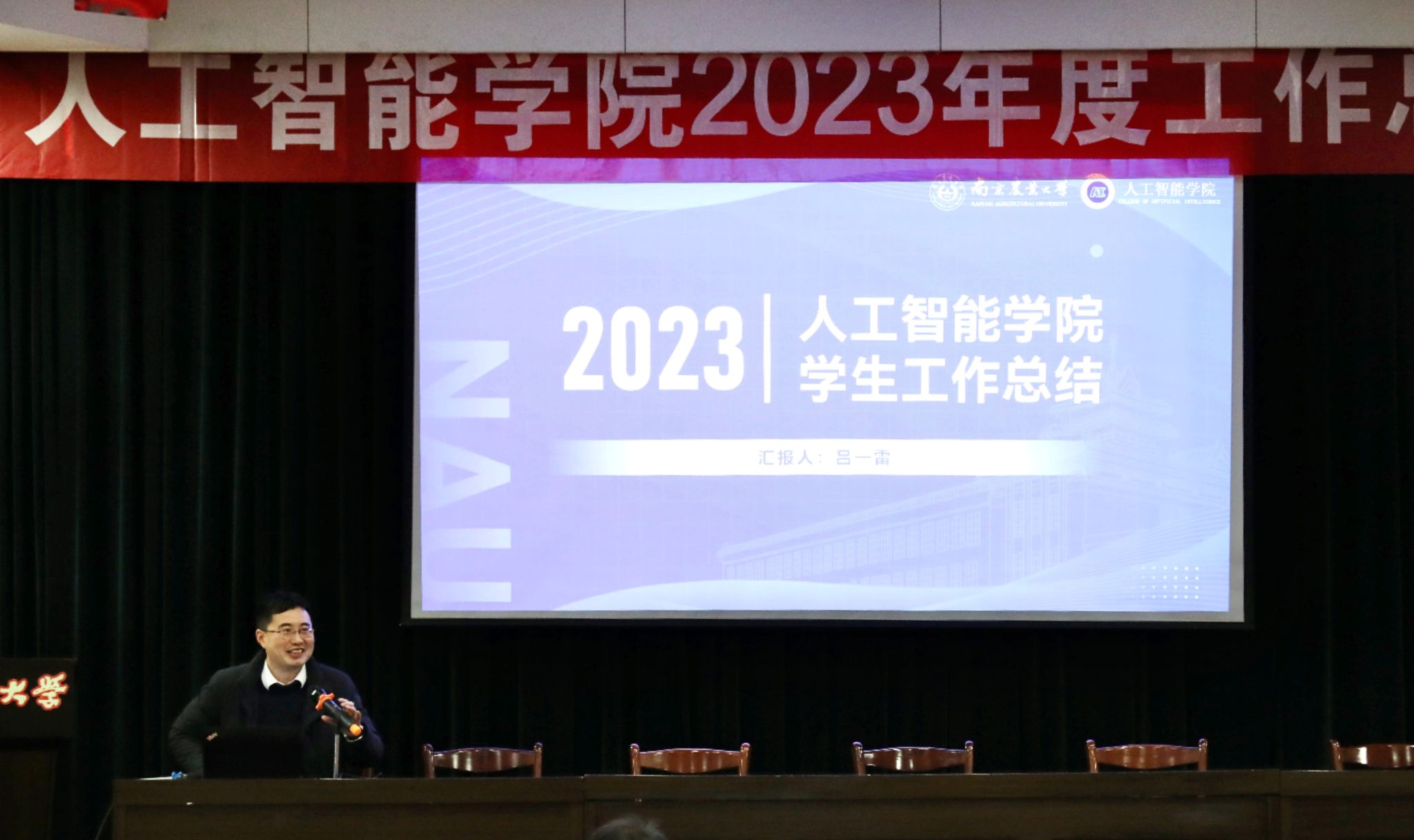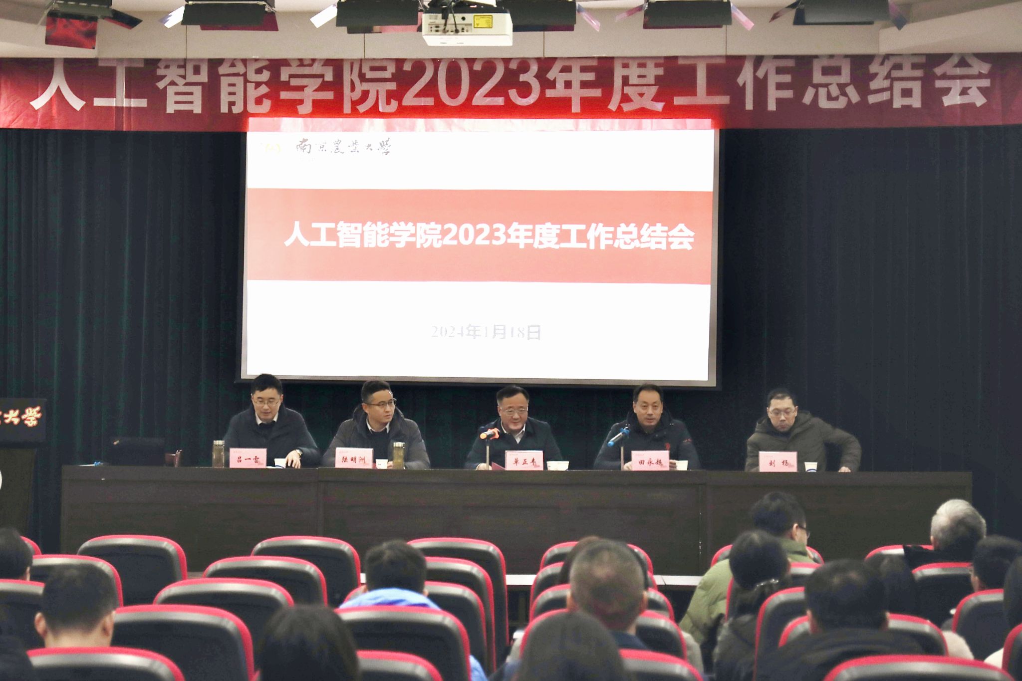 2023年度工作总结交流会。学院领导及全体教职工参加会议。南京农业大学副校长单正丰出席会议并作开场讲话。