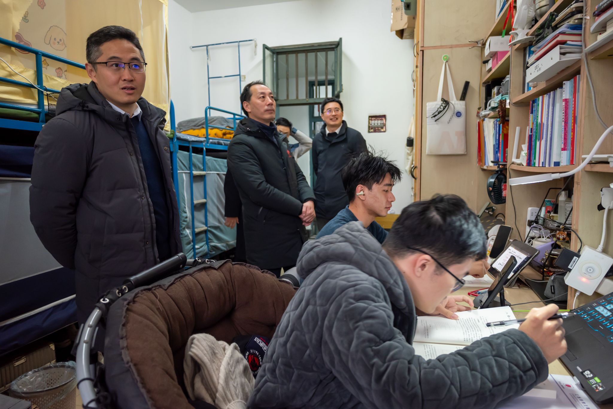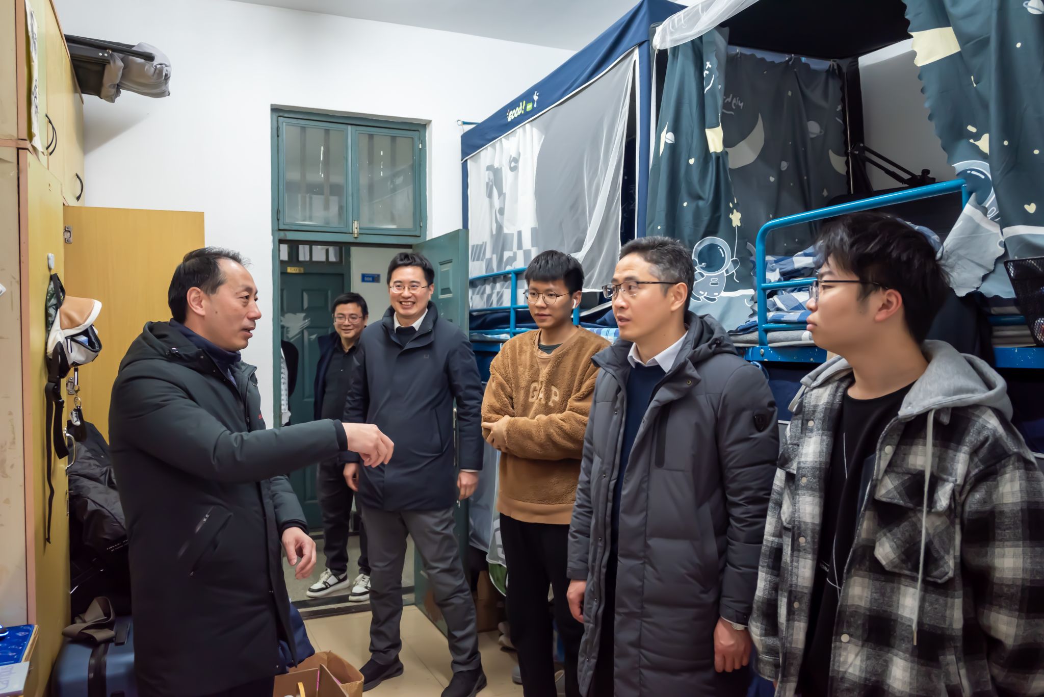 党委书记田永超、副院长陆明洲(主持工作)、党委副书记吕一雷、自动214班班主任刘龙申、自动212班班主任陈卫、学工办副主任湛斌、辅导员于佳琪一同深入学生宿舍,开展宿舍走访工作。