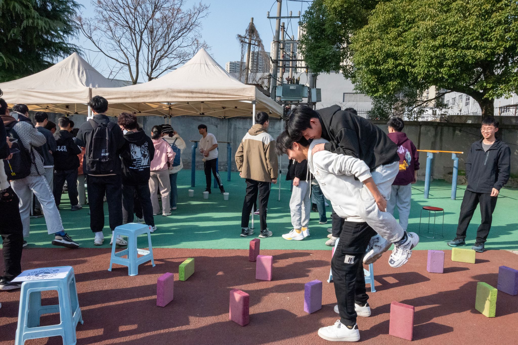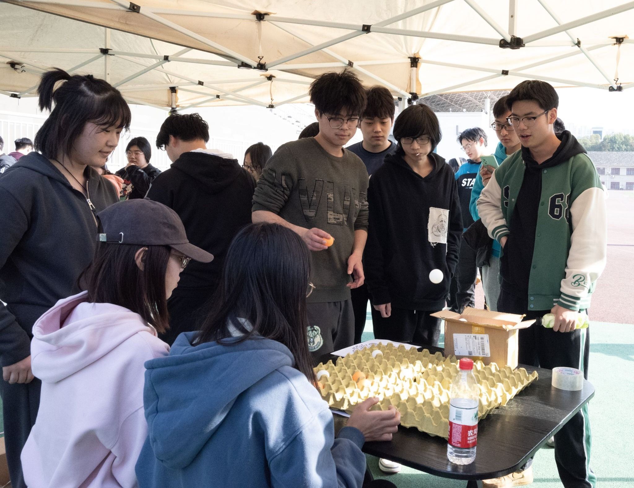 本次心理健康周以缓解开学焦虑为出发点,开展了包含“抛开烦恼”、“协心度难”、“快乐传真”、“趣味乒乓”在内的四个系列活动,现场欢笑不断,气氛热烈。首先,“抛开烦恼”环节让同学们将写有烦恼的便签放入瓶中,再借助沙包将其击倒,从心理暗示机制出发帮助他们释放压力,塑就学生乐观向上心态;其次,“协心度难”环节从紧张刺激的团队游戏出发,鼓励并引导他们迈出人际交往困境,协作走出内心阴霾;再次,“快乐传真”环节则利用你动我猜的形式,巧妙地增进了学生间的互动,培养了他们彼此信任、勇敢表达的内在动力;最后,“趣味乒乓”环节用将乒乓球弹入鸡蛋托中的游戏,让大家享受乐趣并投入其中,让活动在一片欢声笑语中圆满落幕。