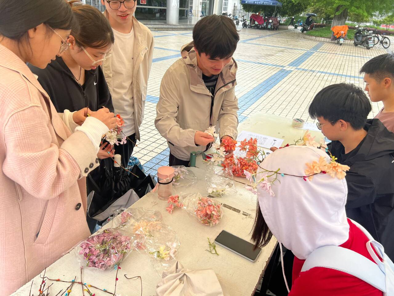 本次活动共分为三个项目。首先是“春日物语,拈花拾趣”花束DIY活动。参与的同学用线下广宣发放的材料(花环、扭扭棒)设计并制作出自己喜欢的花环或者喜欢的形状,展示自我的创造力和想象力,提升自己的审美水平动手能力。然后是“律动青春,绽放芳华”主题活动。同学们手拿不同颜色的花朵图片绕成一个圈,根据颜色规则进行追捕。在捕捉环节中,同学们能够释放情绪,缓解压力,同时能和参与同学一起体会游戏的快乐,放松心情。最后是“舞动森林,自然之音”聆听自然主题活动。参与的同学认真聆听与森林有关的声音,根据题目选出自己的答案,答题过程中既考验了同学们的自然知识储备,又为大家提供了自我反思和放松的机会。活动现场同学们积极参与其中,在享受春光的同时挥洒青春汗水。在你追我赶中,体验了游戏的乐趣,在聆听自然之音中,感受了大自然的多元化,体会了自然的魅力。