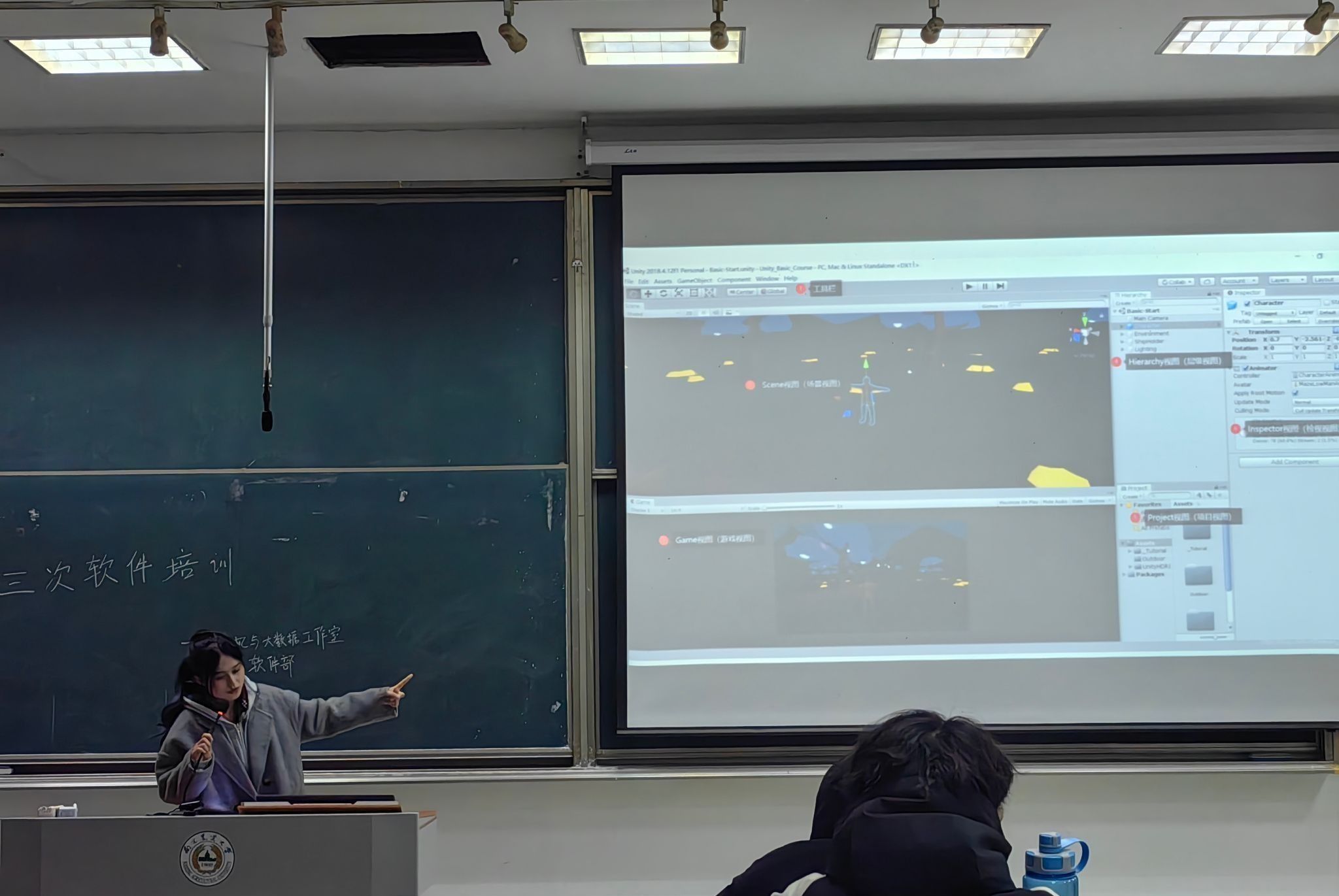 培训开始前,工作人员在第二课堂平台、学院官方账号及相关科研群进行了广泛宣传,获得了学生的热烈反响和积极参与。本系列培训每个主题分配两课时,针对计算机系专业核心的算法、网页、软件能力开展,具体包括数论基础、三分算法、Unity引擎、JAVA网页设计等相关内容。各授课主讲人利用生动的案例,丰富的多媒体内容,深入浅出地介绍了培训相关内容,令在场同学收获颇丰。