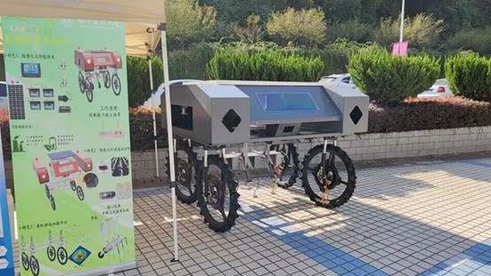 特等奖作品《基于并联转刀机构的太阳能混动型株间除草机器人》以太阳能为驱动主能源,可利用太阳能-蓄电池混合系统根据要求和实际情况自主切换供电模式来降低能耗;该机器人利用视觉对农作物行间的惯性导航算法进行除草路径规划,采用轻量级神经网络完成识别植株,同时其现有除草机构及控制算法得到了改进,进一步降低了伤苗率。四驱独立转向的设计,使其具有高动力性能和良好的移动能力,实现了智能转向、自主导航、可面向多种大田环境进行行间、株间精准破土除草作业的功能,具有高机动性、智能化、高效率的特点。