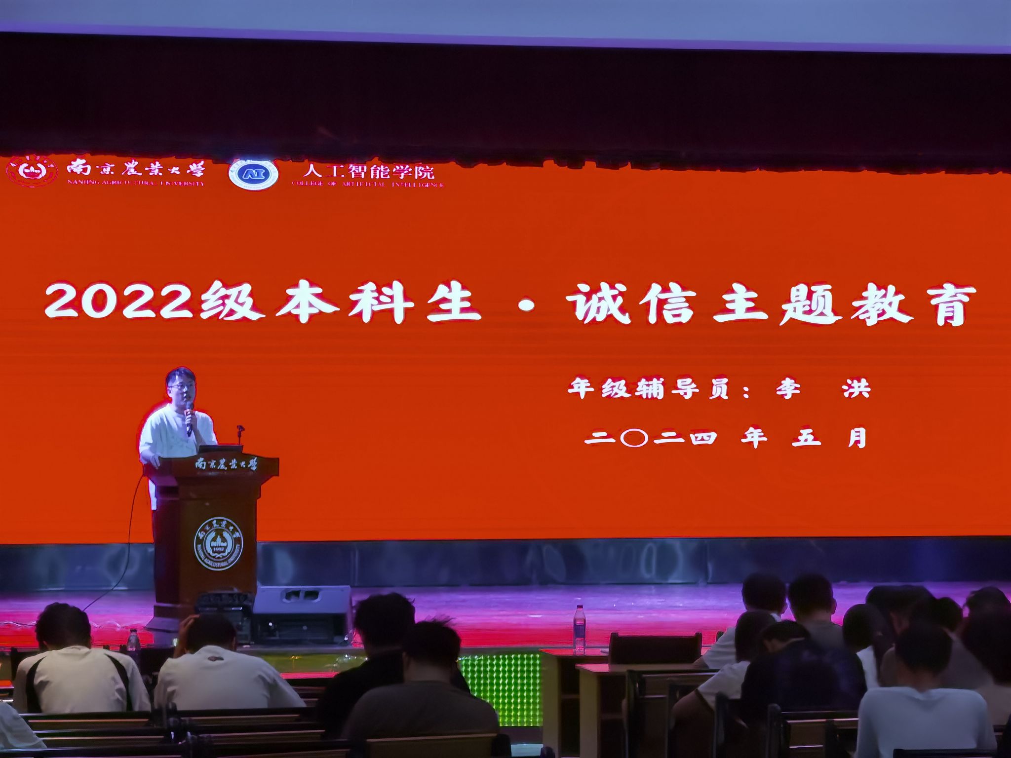 在浦口校区大学生活动中心召开2022级本科生年级大会。学院党委副书记吕一雷、学工办主任湛斌、本科生辅导员李洪以及2022级447名本科生参与会议。会议由湛斌主持。