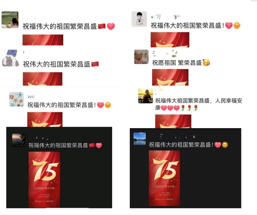 教职工积极响应、踊跃参与、纷纷转发并用最美的语言表白祖国,祝福伟大的祖国繁荣昌盛,人民幸福安康。