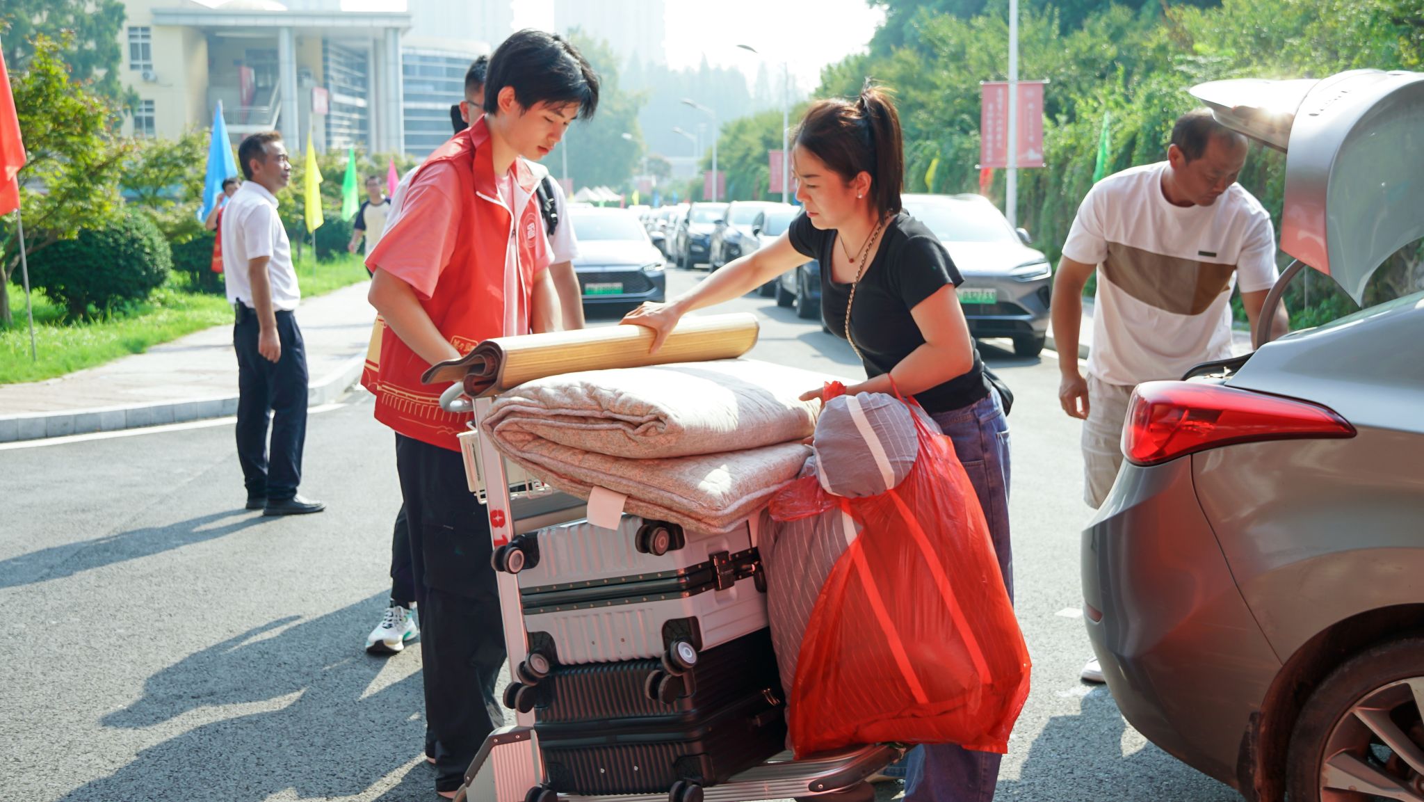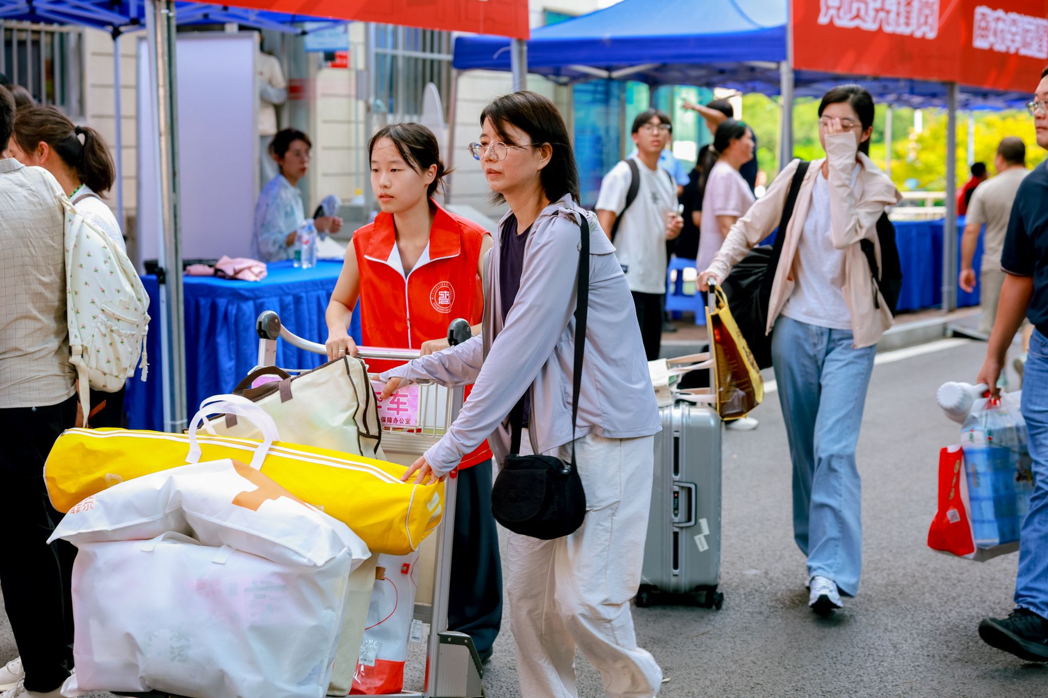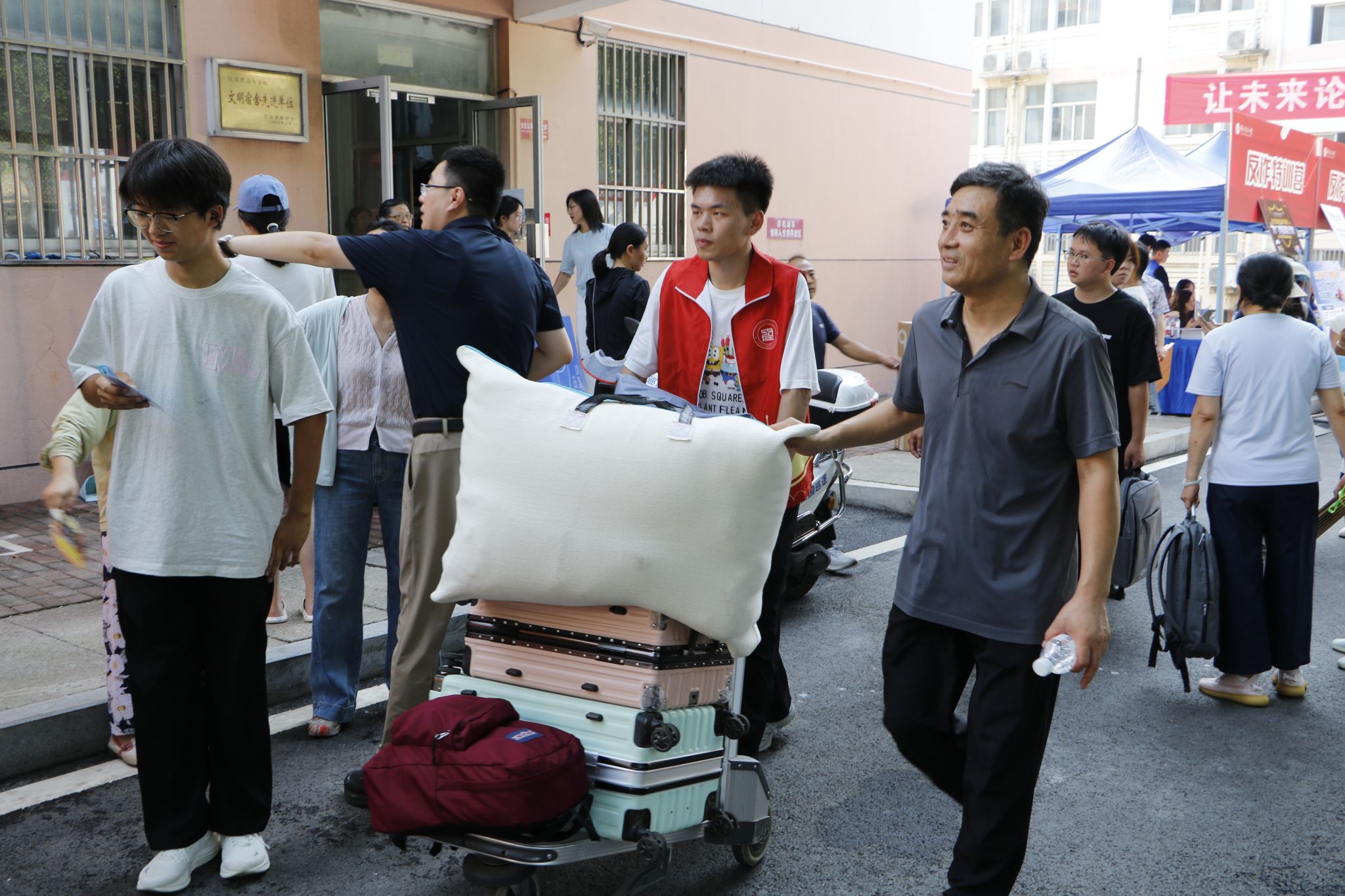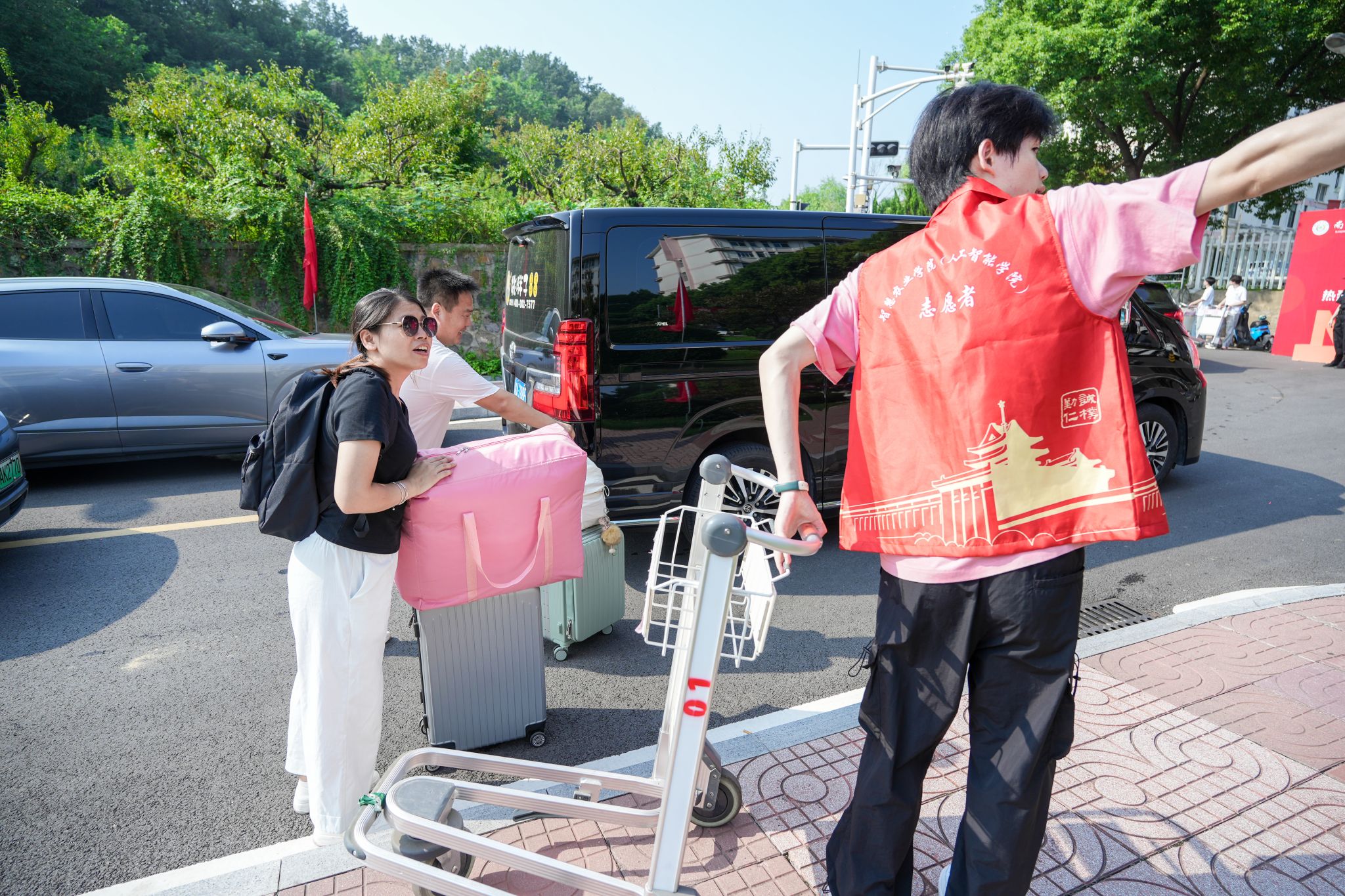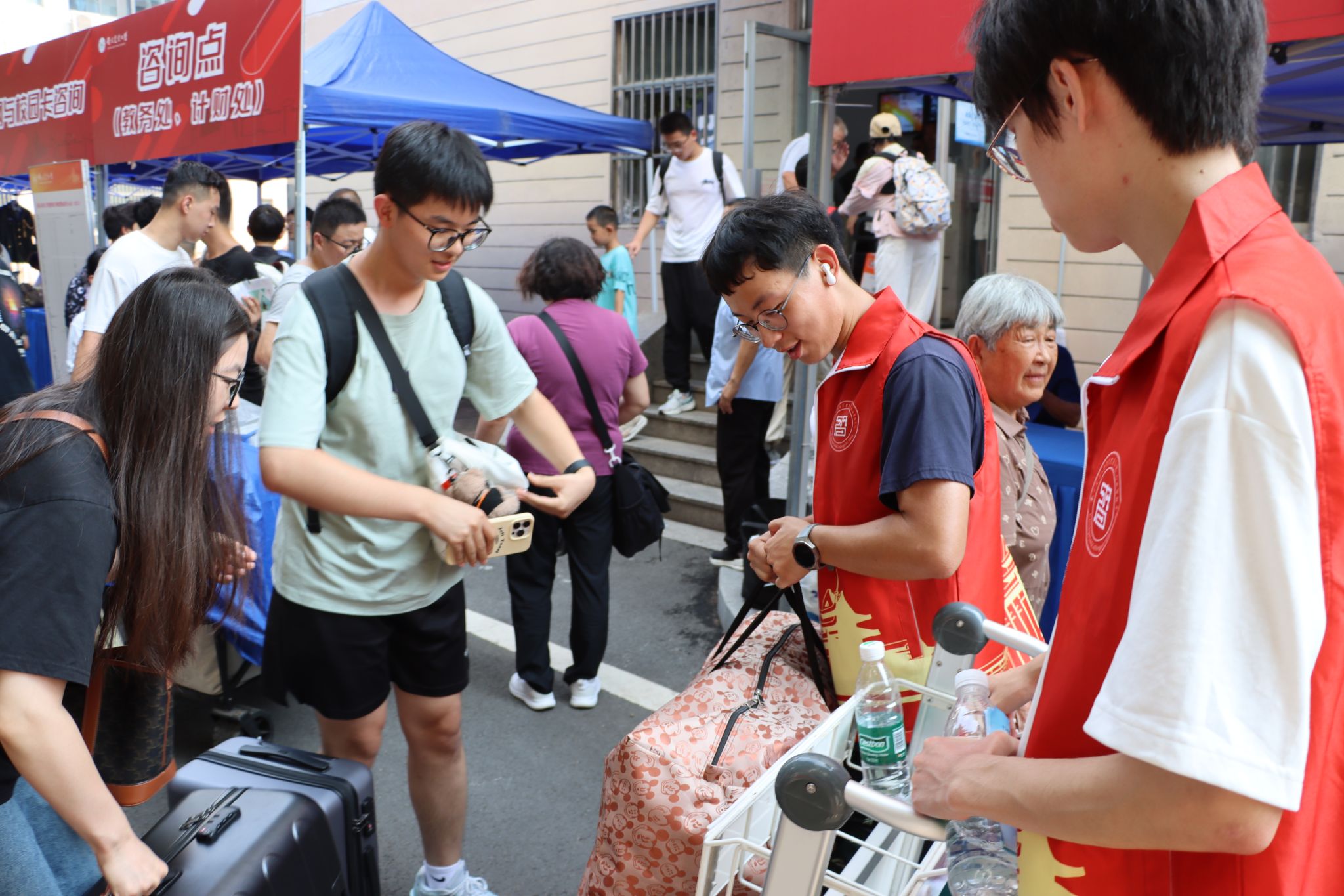 穿梭于人群中的“志愿红”更成为流动的风景线:百余名学生志愿者组成“迎新先锋队”,从行李搬运到校园导览,用脚步丈量服务的温度,用微笑传递朋辈的关怀。