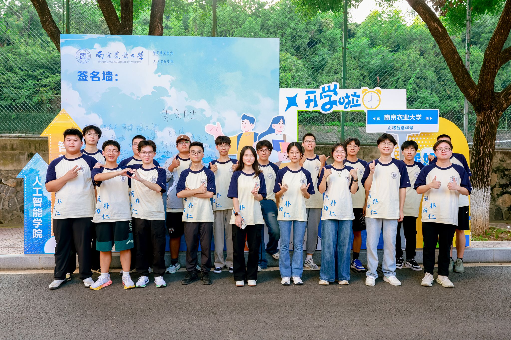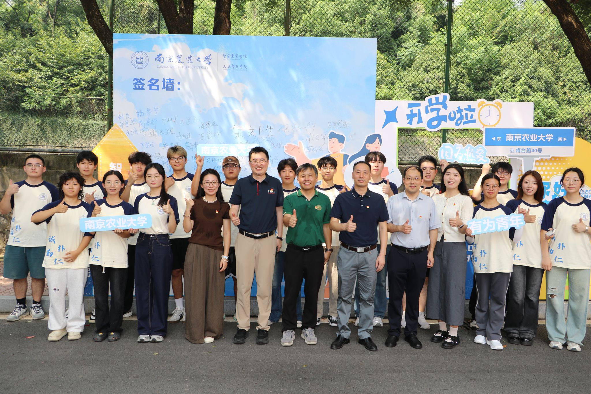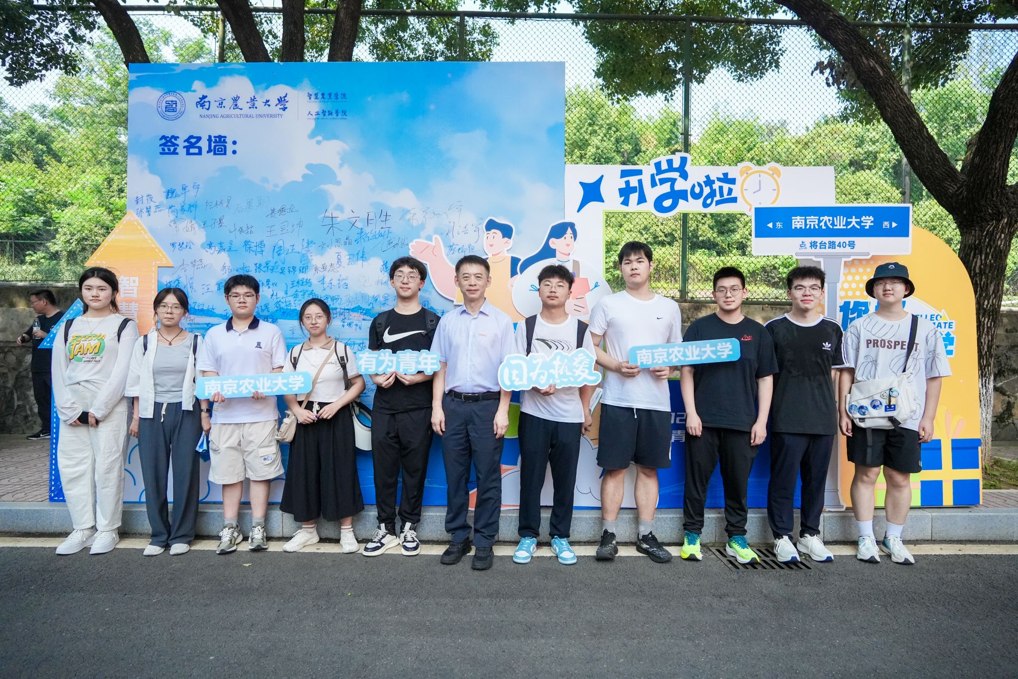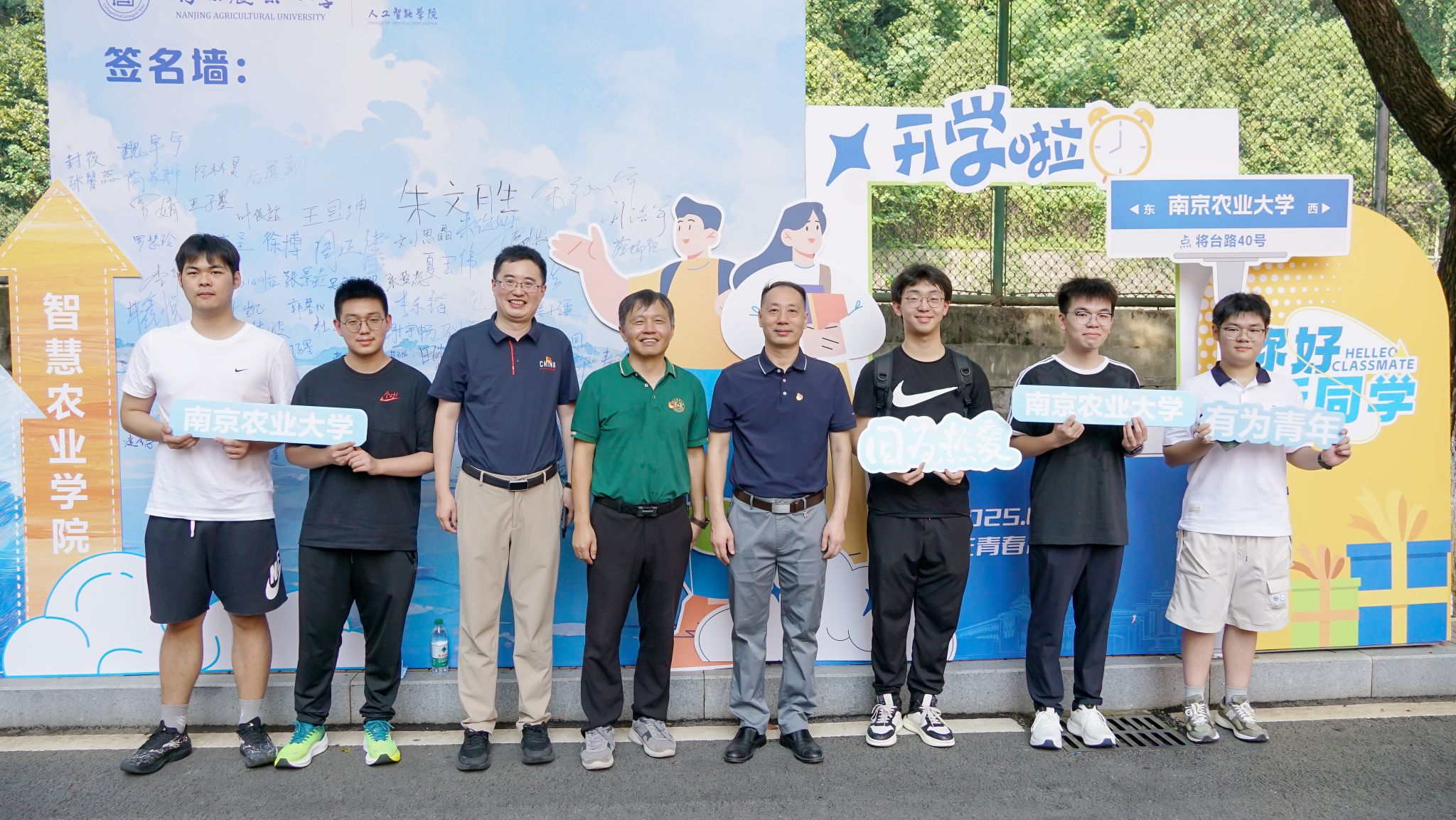 学院特别打造的主题签名墙成为迎新现场的视觉焦点——以蓝色为主色调的背景板上,“智慧农业学院(麻豆视频