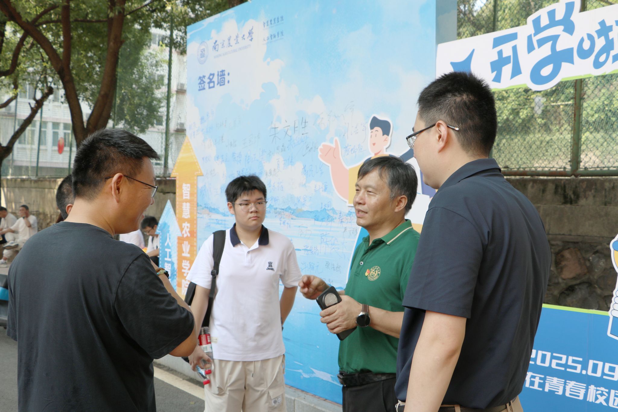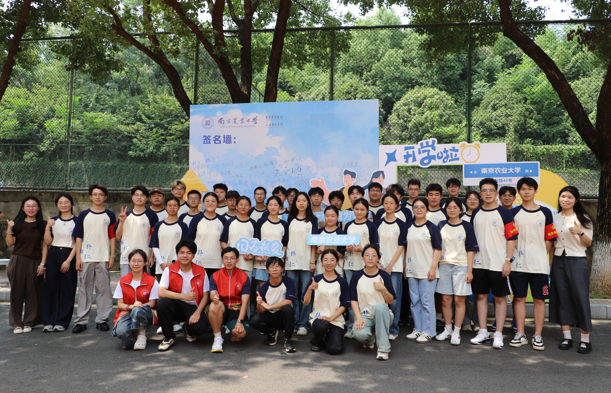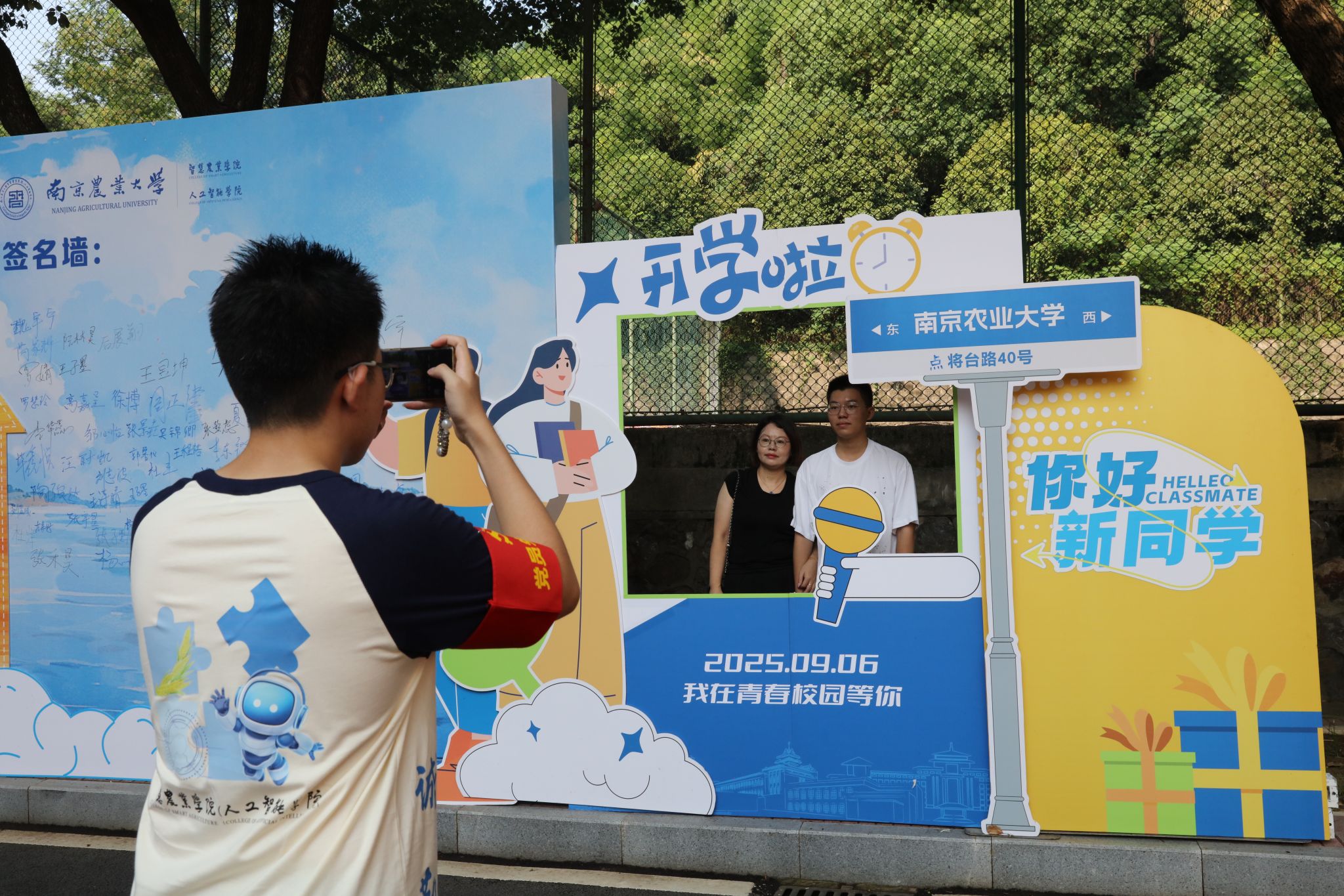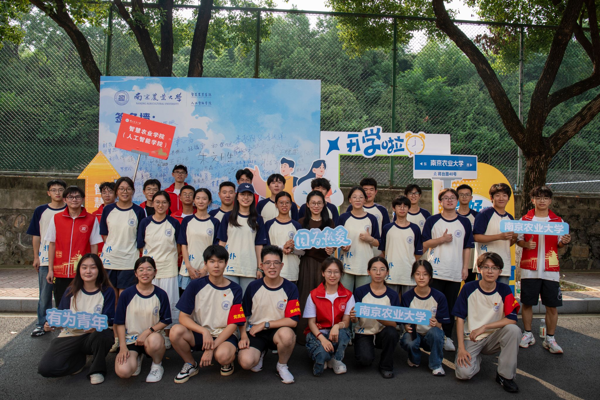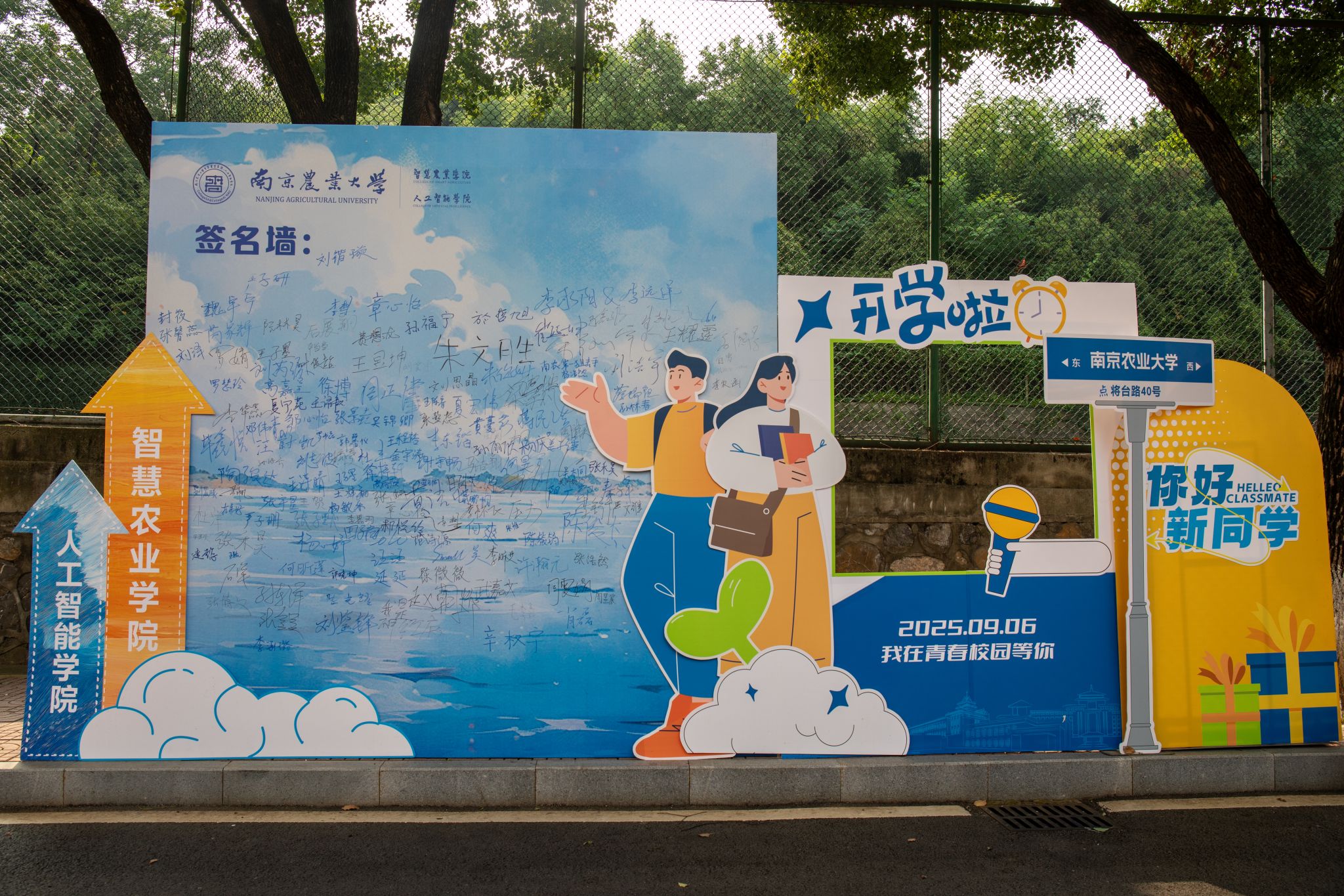 学院特别打造的主题签名墙成为迎新现场的视觉焦点——以蓝色为主色调的背景板上,“智慧农业学院(麻豆视频