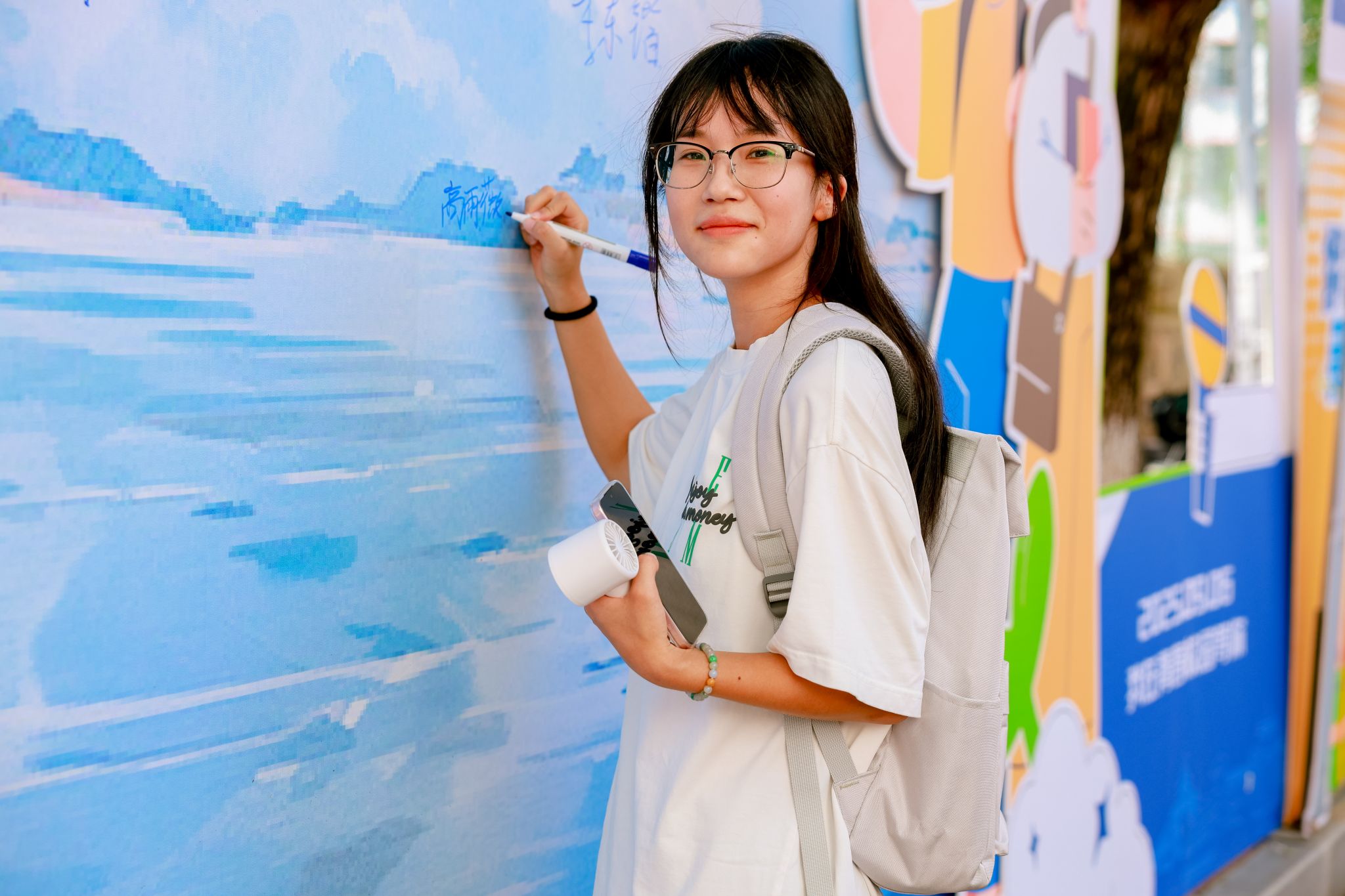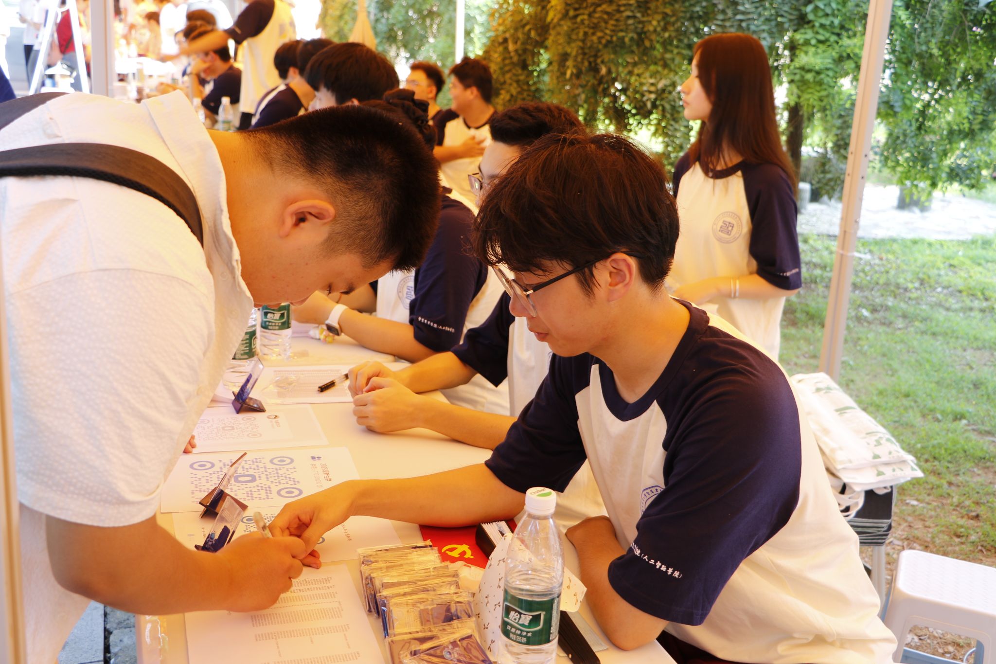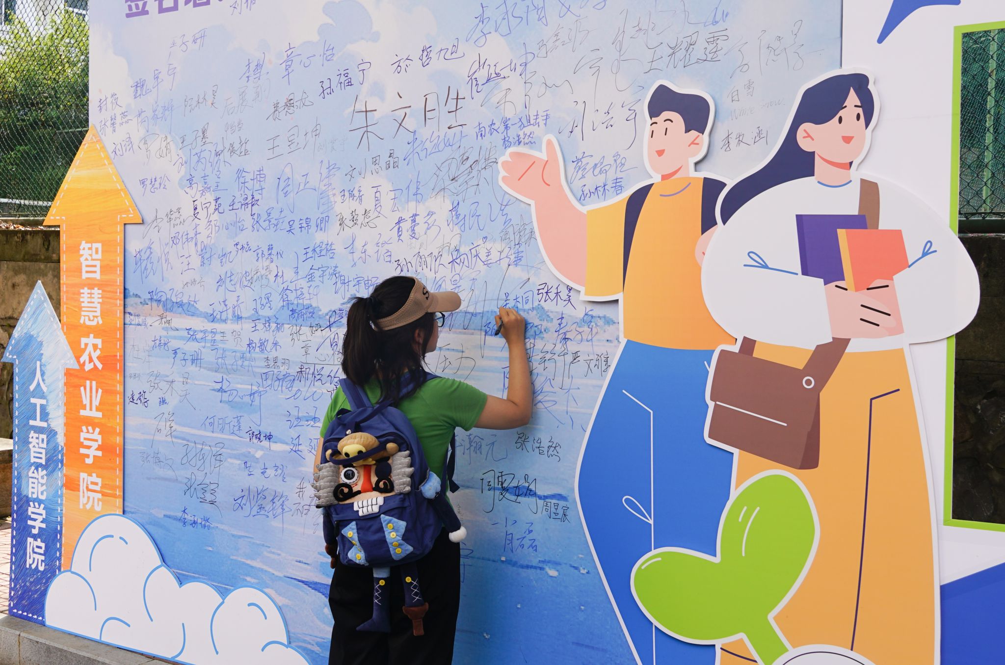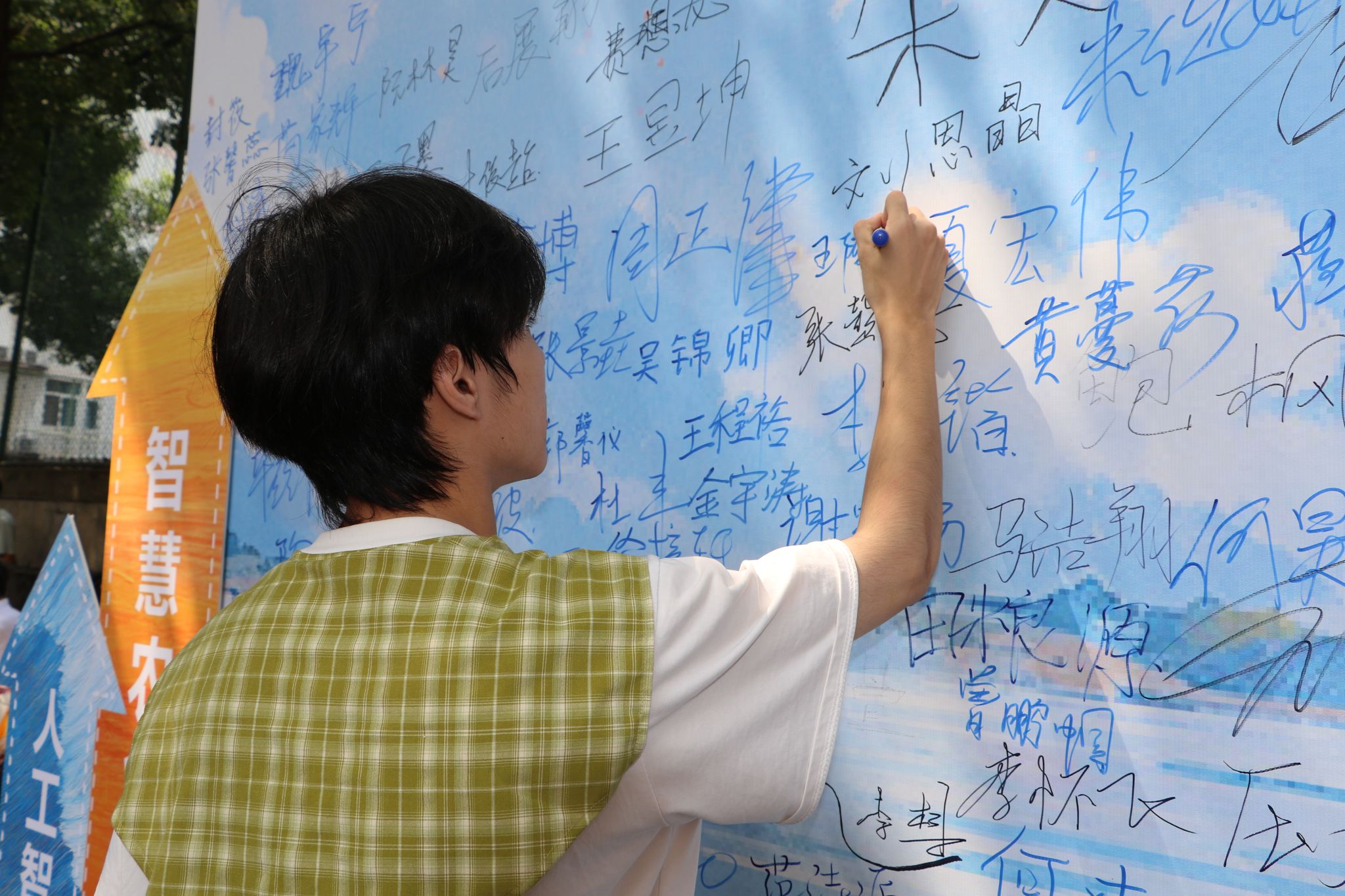 学院特别打造的主题签名墙成为迎新现场的视觉焦点——以蓝色为主色调的背景板上,“智慧农业学院(麻豆视频